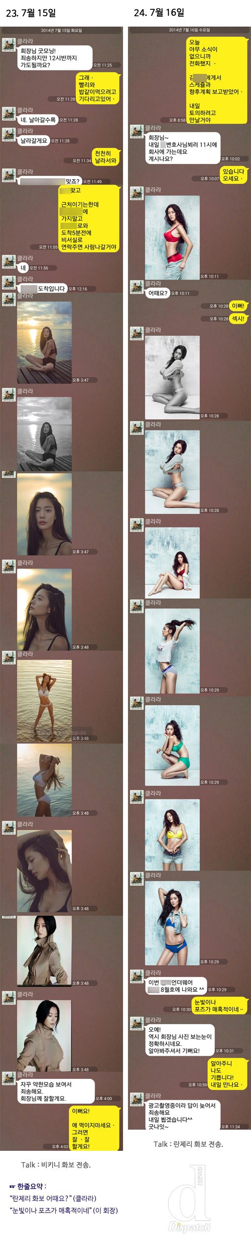 '디스패치'는 두 사람의 대화를 '시간순'으로 공개할 예정이다. 클라라가 분실했다는 5, 6, 7월의 문자까지 넣었다. 단, 제 3자가 개입되는 일부 대화는 제외했다.