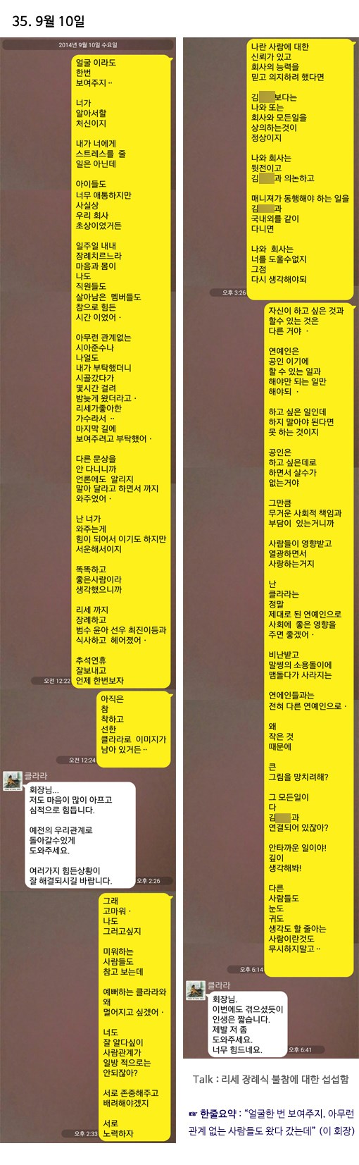 ☞ 클라라와 이 회장이 나눈 SNS 전문이다. 시간순으로 배열했다.