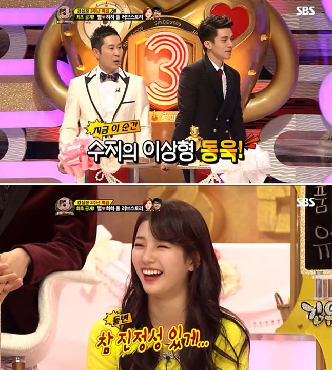 그리고 수지는 "지금 현재 이상형은 여기 있는 MC 이동욱"이라고 말했습니다.