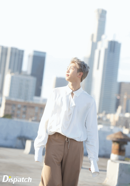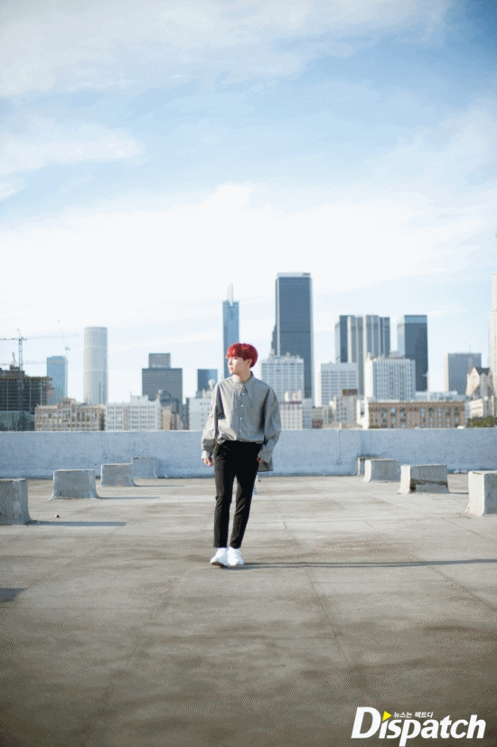 2017년 11월, RM은 LA 빌딩 숲을 걸었습니다. AMAs 무대에 오르기 며칠 전입니다.