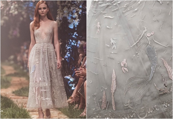 ‘인어 공주’ 애니메이션 탄생 28년을 기념해 만든 드레스입니다. 주제곡 ‘Part of your world’를 듣고 난 후 제작했다는데요. 정교한 자수와 비즈로 인어공주가 사는 바다속 풍경을 입체감있게 담았습니다.
