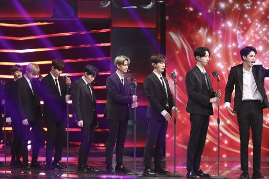 '라돌체비타' 쇼맨도 궁금하시죠? 워너원이 등장했습니다. 올블랙 수트를 입고 2018 버전을 열창했는데요.