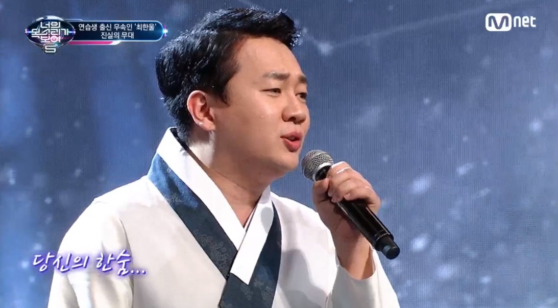 최한울은 이하이의 '한숨'을 불렀습니다. 호소력 짙은 목소리로 패널들에게 감동을 안겼습니다.