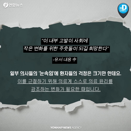 일부 의사들의 '눈속임'에 환자들의 걱정은 크기만 한데요. 이를 근절하기 위해 의료계 스스로 의료 윤리를 강조하는 변화가 필요한 때입니다.