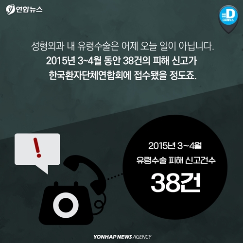 성형외과 내 유령수술은 어제 오늘 일이 아닙니다. 2015년 3~4월 동안 38건의 피해 신고가 한국환자단체연합회에 접수됐을 정도죠.
