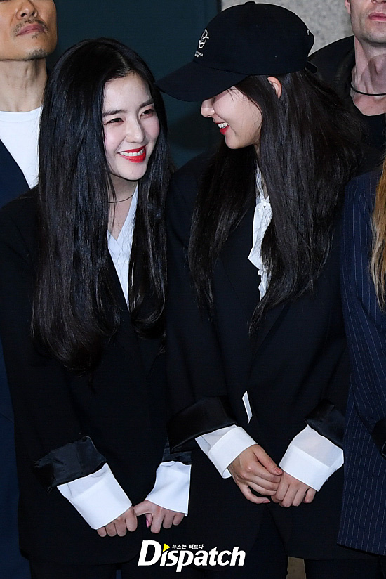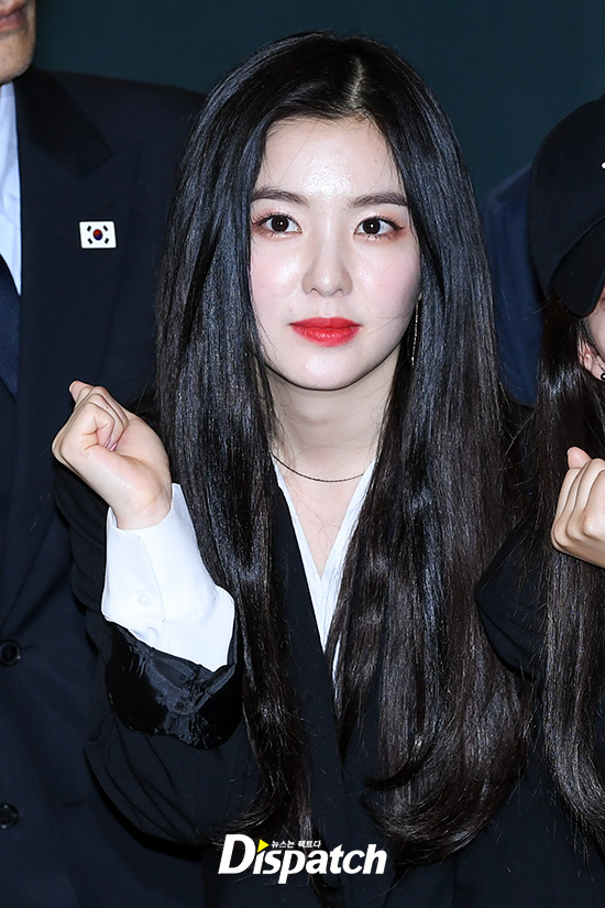 아이린은 이날 블랙 자켓과 블라우스로 차분한 패션을 완성했다. 인형같은 미모가 눈에 띄었다.