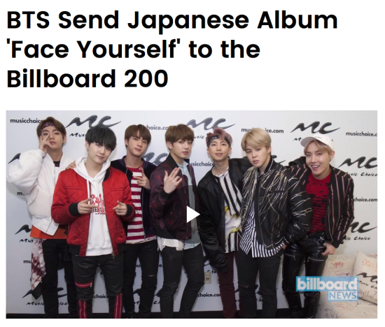 [Dispatch=박혜진기자] ‘방탄소년단’이 새 기록을 추가했다. 일본 정규 3집 앨범 ‘페이스 유어셀프’(FACE YOURSELF)로 미국 '빌보드' 메인 차트에 진입했다.