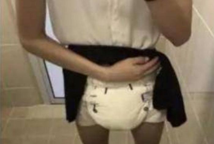 흰 민소매 셔츠에 검은 치마를 입었는데요. 여성은 자신의 치마를 올리고 기저귀를 차고 있는 모습을 공개했습니다.