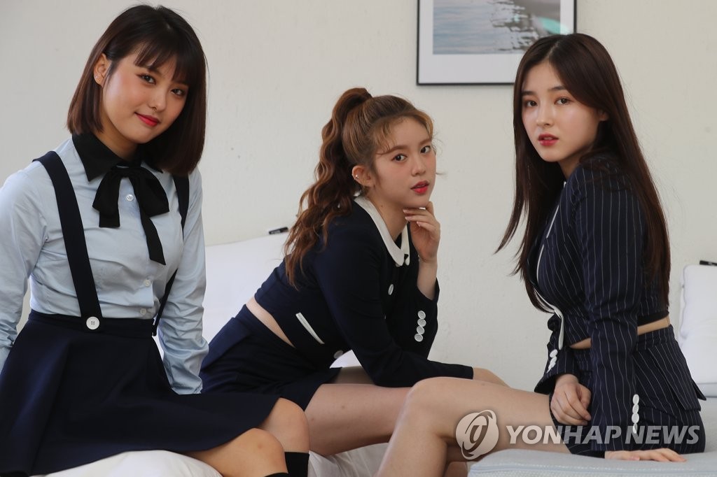 최근 서울 강남구 청담동의 한 카페에서 진행된 인터뷰에는 tvN 예능 '짠내투어' 촬영차 해외에 있는 주이(19)와 감기로 하루 입원한 나윤(20)이 빠져 일곱 멤버가 참석했다.