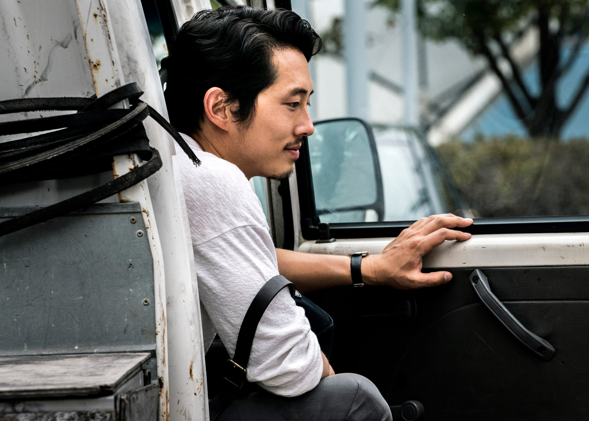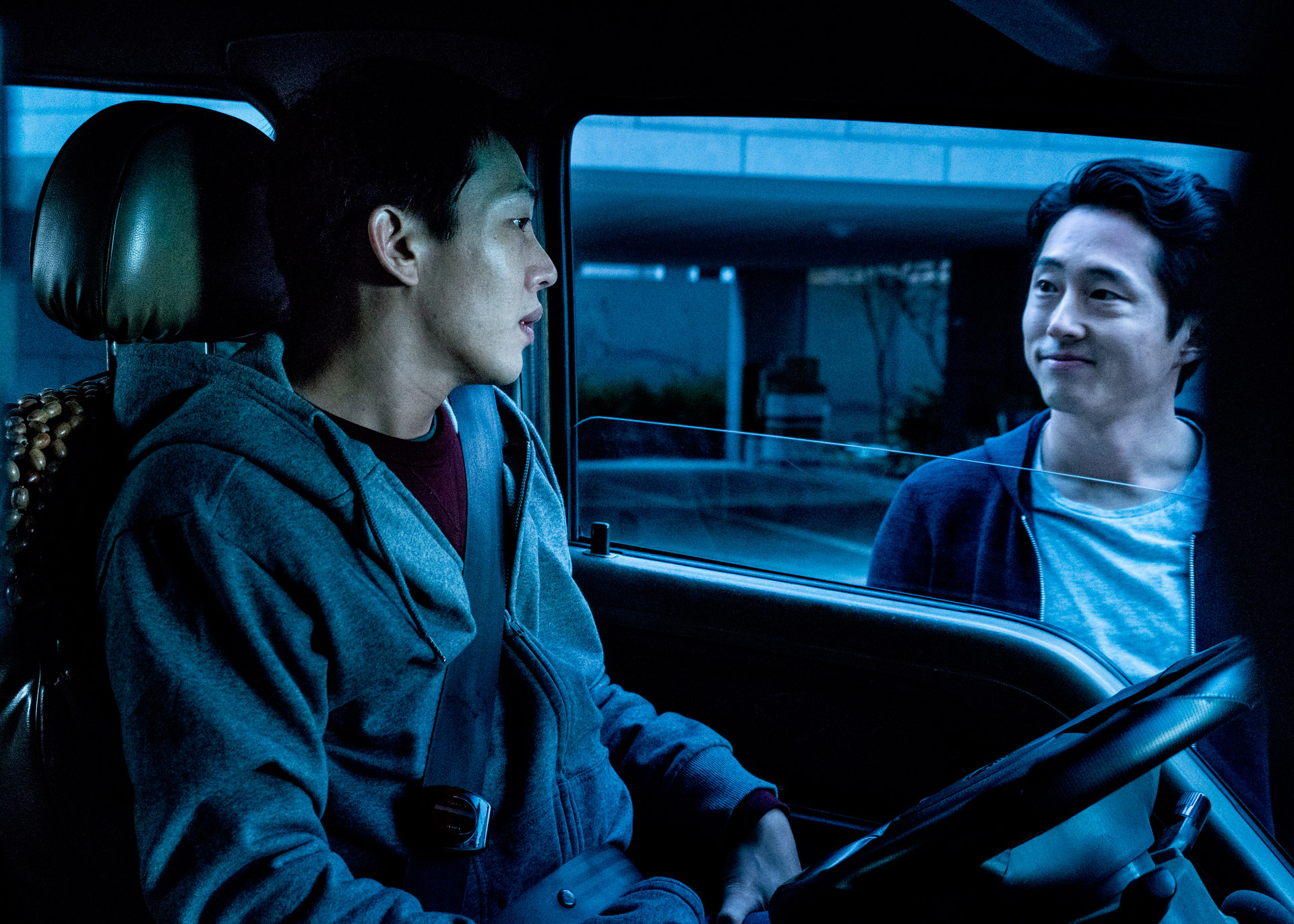 세 사람은 보랏빛 석양을 바라봤다. 유아인의 묘한 눈빛, 스티븐 연의 알 수 없는 표정, 전종서의 비밀스러운 뒷모습 등이 눈길을 끌었다.