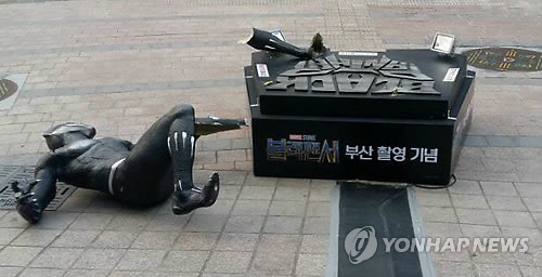 부산에 설치된 블랙팬서 조형물 2개 모두가 취객 탓에 파손된 셈이다.