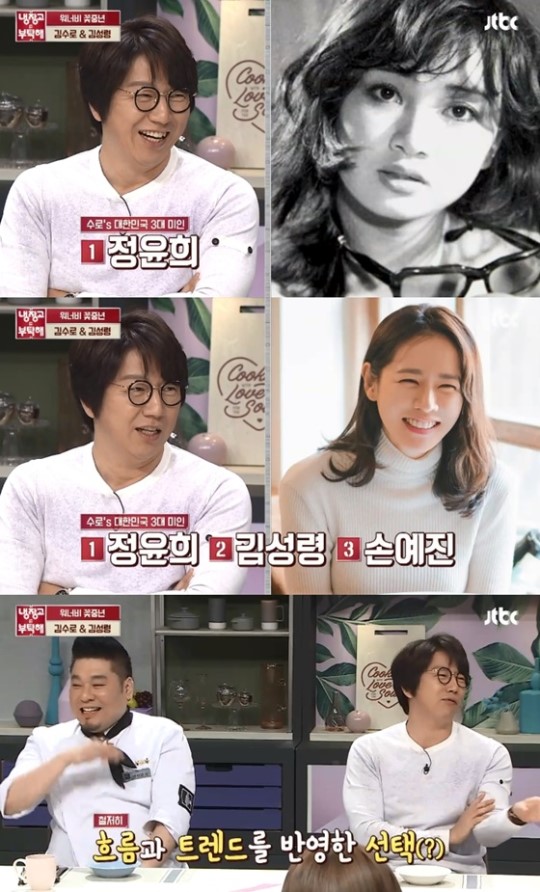 배우 김수로가 김성령, 정윤희, 손예진의 미모를 극찬했다.