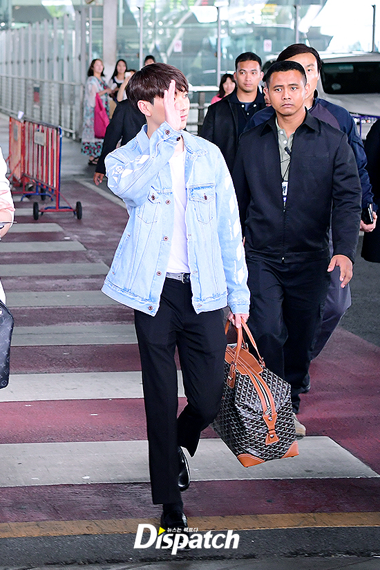 아론은 이날 세련된 공항 패션을 선보였다. 남친룩을 입고 태국 팬들에게 인사를 건넸다. 아론이 등장하자 팬들은 뜨거운 함성을 보냈다.