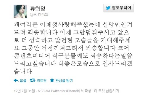 화영은 트위터를 통해 사과의 뜻을 전했다. 그리고 언니 효영과 함께 김광수 대표를 찾아갔다. 하지만 네티즌들은 거꾸로 판단하고 있다. 효영이 김광수 대표를 먼저 만났고, 강압에 못이겨 트위터에 '억지사과'를 올렸다고 주장한다.