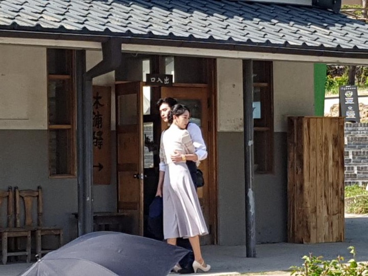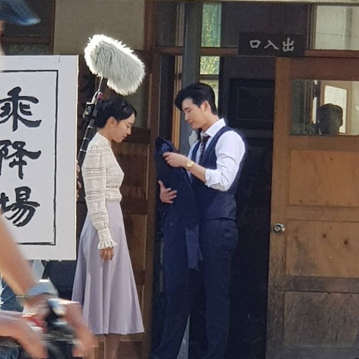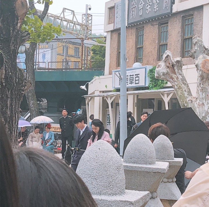시대극 비주얼이 눈길을 끕니다. 두 사람의 주변에는 일제 강점기를 표현한 건물들이 늘어서 있었습니다.