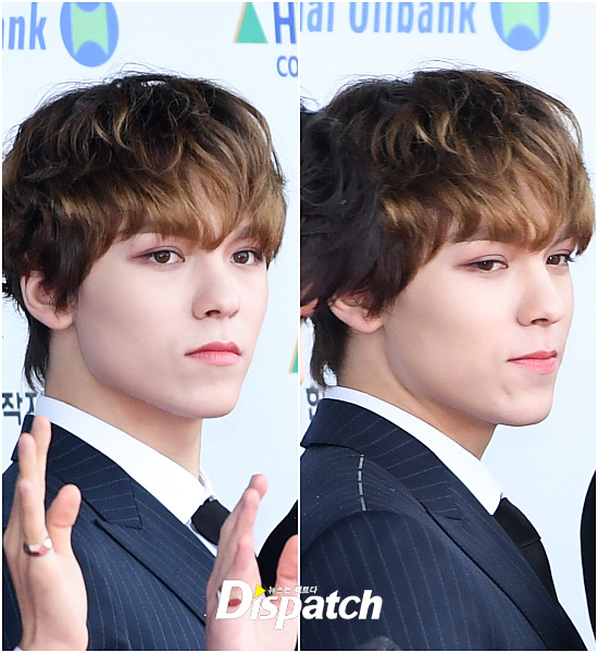 '세븐틴' 버논은 조각같은 비주얼로 취재진의 시선을 한눈에 이끌었다.