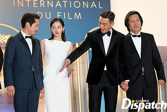 그들은 칸의 감격을 온몸으로 느꼈다. 뤼미에르로 향하는 마지막 계단, 울컥하는 모습이었다. 유아인은 두 손으로 눈을 닦기도 했다.