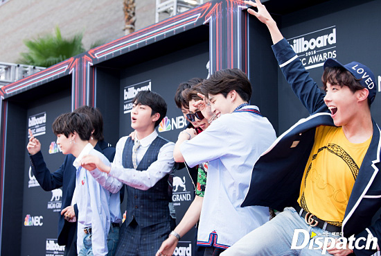 방탄소년단은 이날 댄디한 캐주얼을 모습을 드러냈다. 빌보드가 제공한 의전차량에내려 레드카펫을 걸었다. 현지 취재진들이 뜨거운 취재 경쟁을 보였다.