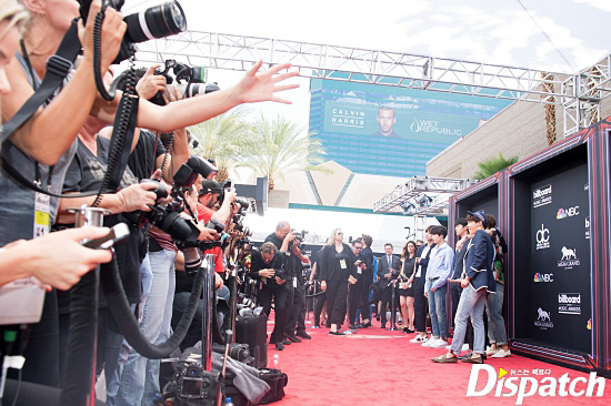 방탄소년단은 이날 댄디한 캐주얼을 모습을 드러냈다. 빌보드가 제공한 의전차량에내려 레드카펫을 걸었다. 현지 취재진들이 뜨거운 취재 경쟁을 보였다.