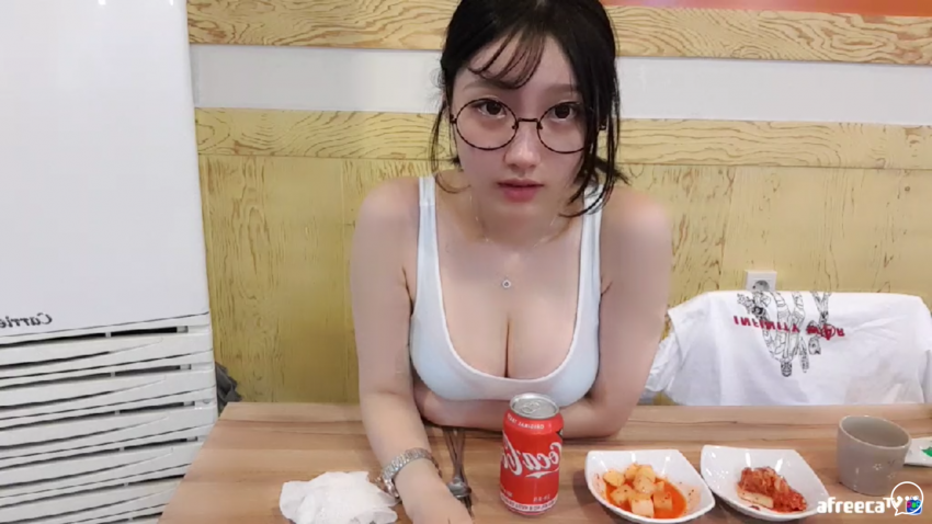 그러던 중 요베비는 상의를 벗었습니다. 속옷이 훤히 비치는 런닝만 입은 상태였는데요.