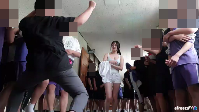 학생들에게 둘러싸인 와중에 섹시댄스를 췄습니다. 학생들은 열광했는데요. 이때 선생님이 등장했고 요베비는 방송을 종료했습니다.