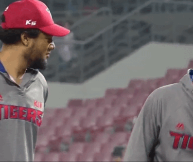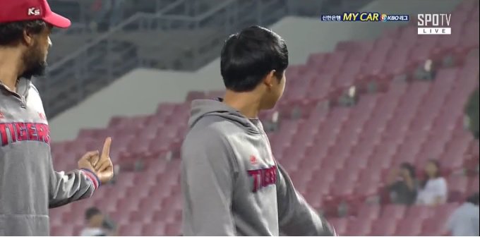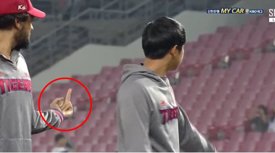 이때 기아 투수 헥터가 중지를 하는 모습이 뚜렷하게 포착됐는데요. 관중석에 한 것인지, 아니면 상대 팀 선수에게 날린 것인지는 확인되지 않았습니다.