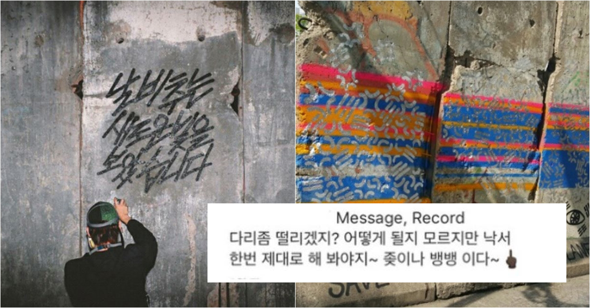 한 페인팅 아티스트가 베를린 장벽을 그래피티로 훼손해 논란입니다. 작업 중 남긴 SNS까지 뭇매를 맞고 있습니다.