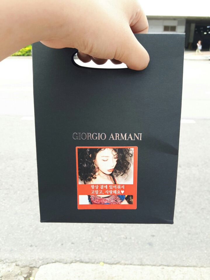 팬들에 따르면, 이날 유빈은 카페를 빌려 조르지오 아르마니의 파운데이션과 립스틱 세트를 선물했다고 합니다.