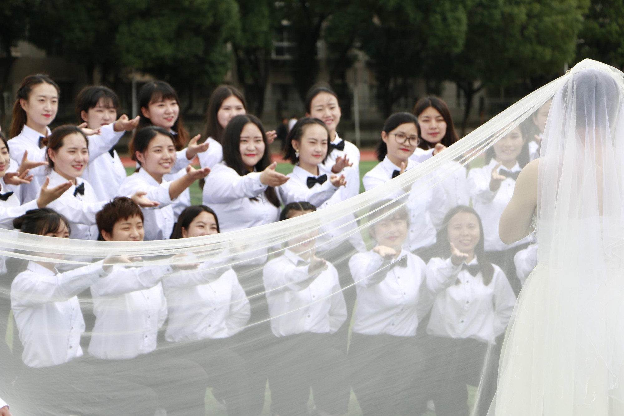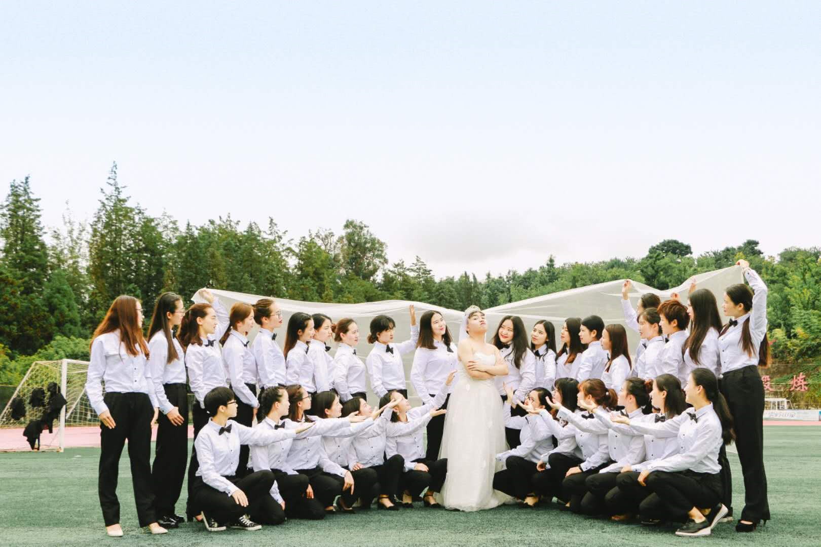 그리고 웨딩드레스를 입고 친구들과 졸업사진을 찍게 됐죠.
