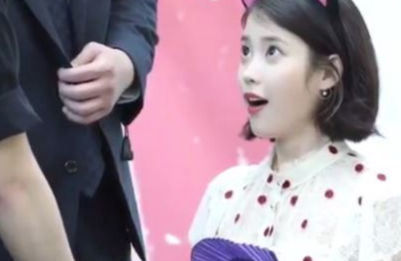가수 아이유가 한 남성 팬의 팔뚝을 보고 매우 놀랐습니다.