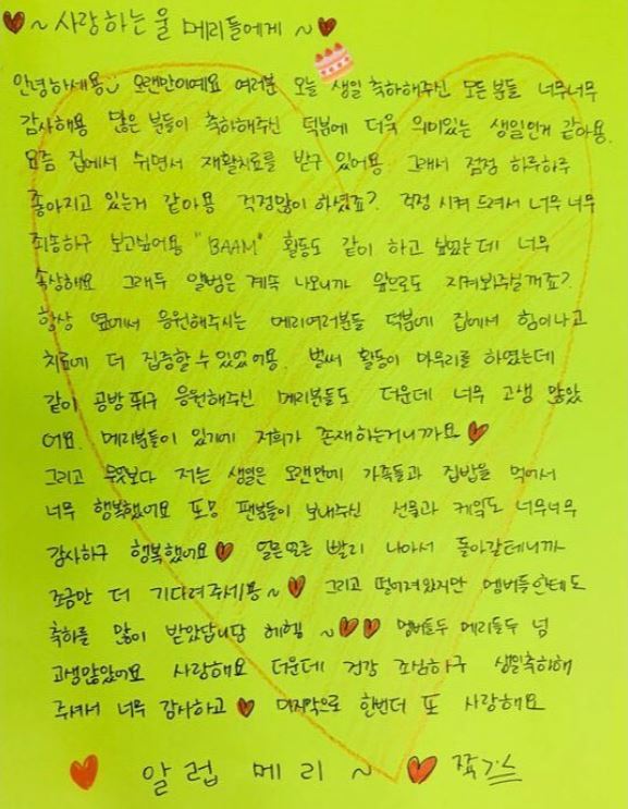 [Dispatch=송수민기자] '모모랜드' 나윤이 팬들을 위해 손편지를 썼다. 나윤은 현재 이석증으로 휴식 중이다.