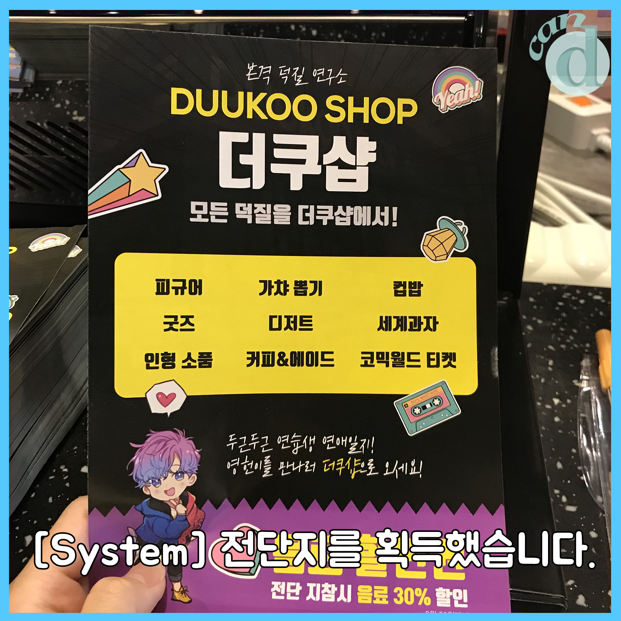 지하 1층으로 내려오면 바로 더쿠샵을 만날 수 있습니다. 도착과 함께 전단지를 받아 매장을 둘러봤습니다.