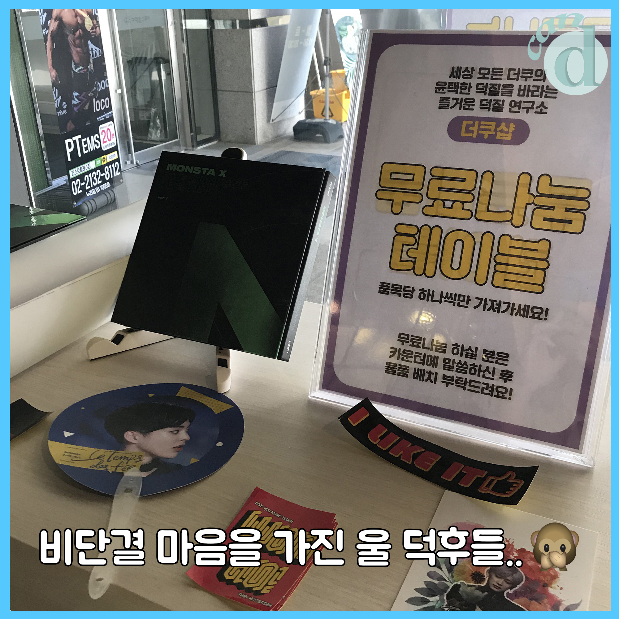 아이돌 덕후들을 위한 무료 나눔 테이블이 눈에 띄었습니다.