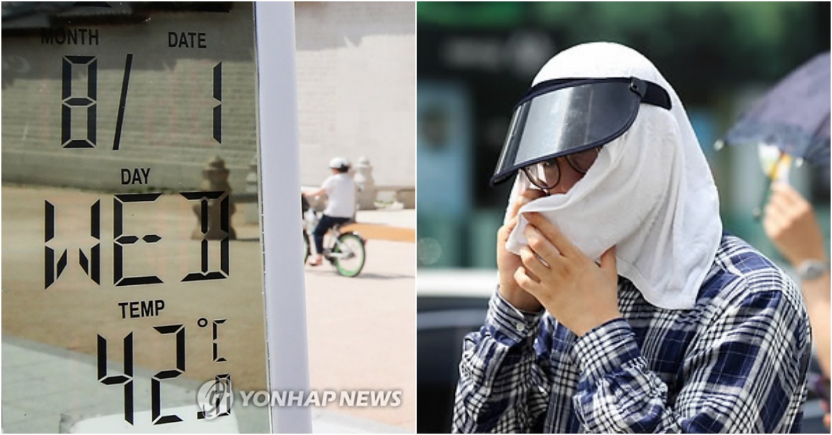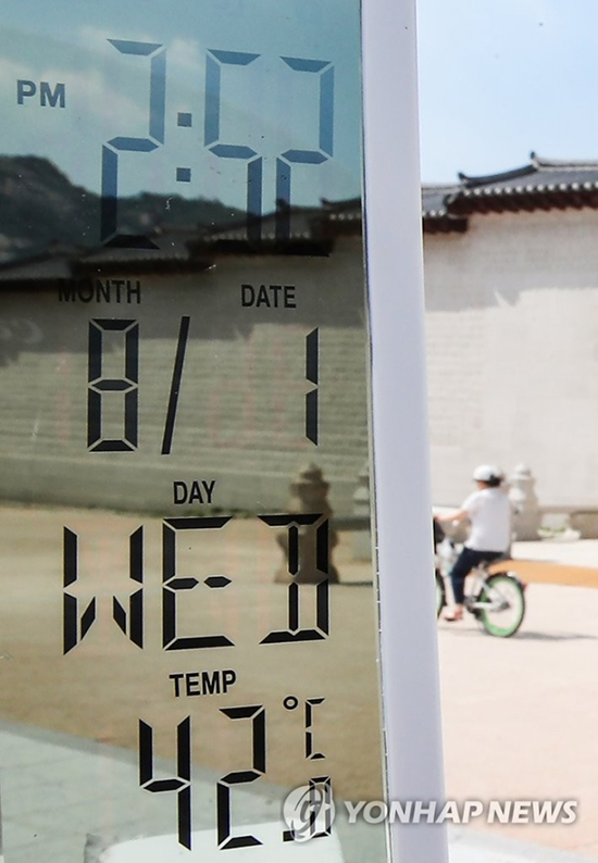 (서울=연합뉴스) 황광모 기자 = 기상 관측 사상 서울의 기온이 사상 최고를 기록한 1일 오후, 서울 종로구 광화문 앞 거리에서 간이 온도계로 측정한 기온이 42도를 기록하고 있다. 2018.8.1