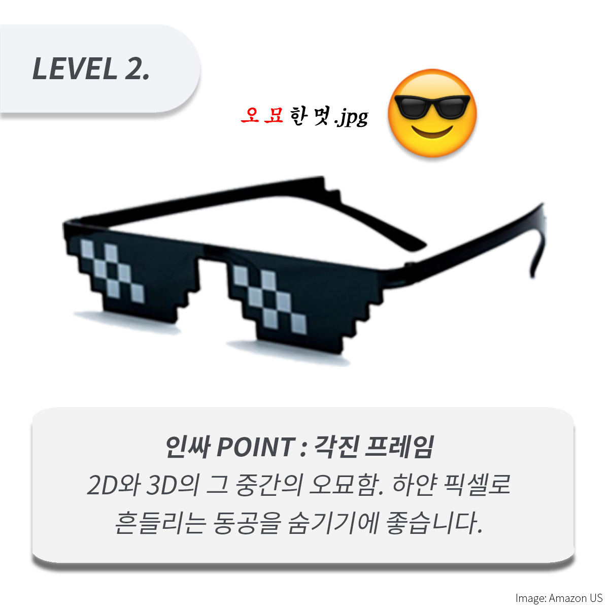 레벨 2는 여름에 빼놓을 수 없는 선글라스입니다. 독특한 디자인이라 조금 튀는 편인데요.