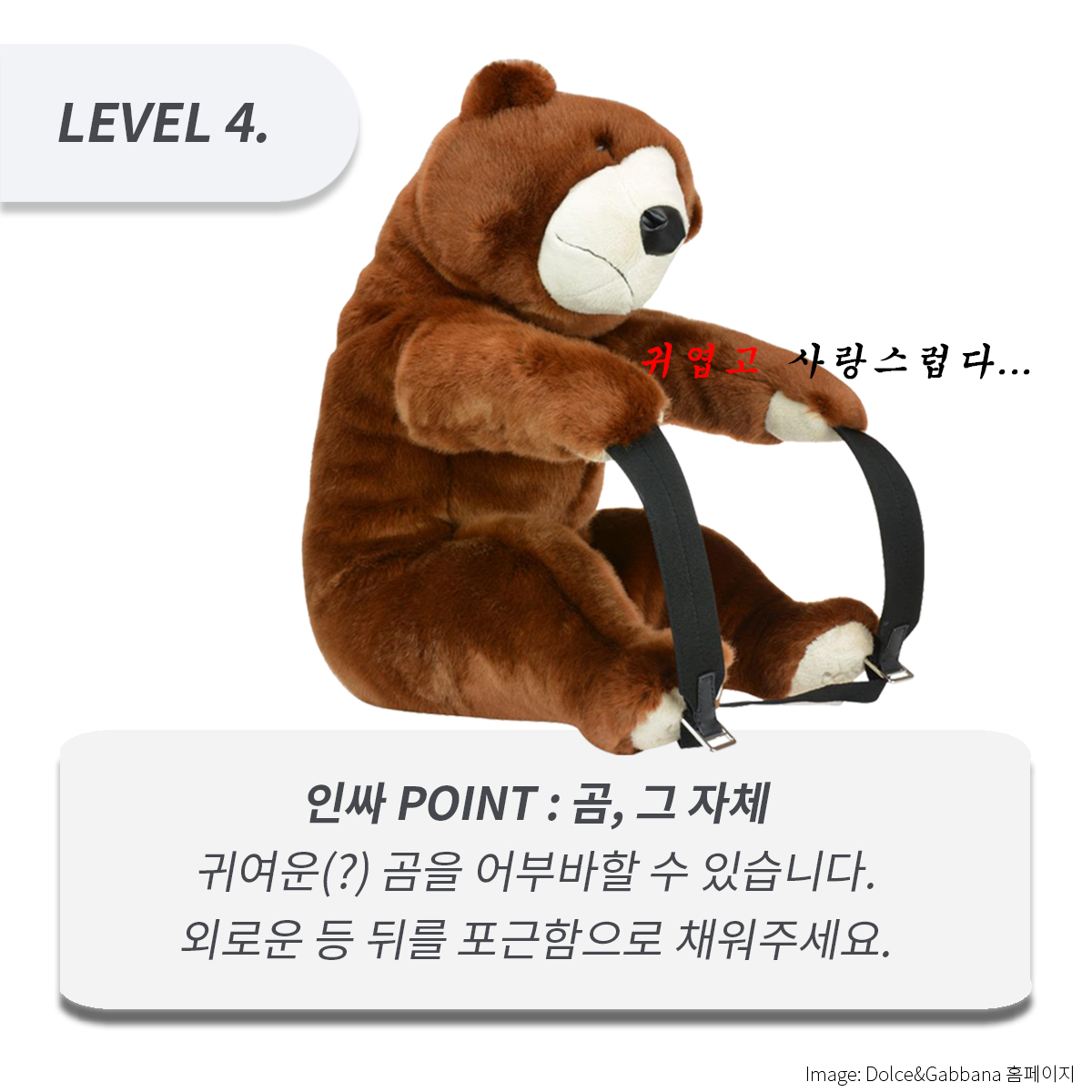 레벨 4에 도달하셨습니다. 그런데, 등 뒤에 왠 곰인형이냐고요?