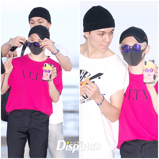 ‘세븐틴’ 우지는 이날 버논의 그림이 그려진 폰케이스를 들고 공항에 등장했다. 공항의 모인 팬들과 취재진을 위해 유쾌한 포즈를 취하는 등 남다른 팬서비스가 돋보였다.