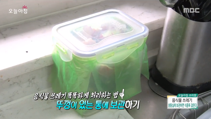 냄새와 벌레가 걱정이신 분들은 뚜껑이 있는 용기를 이용하는 것도 좋다고 합니다. 통 안에 음식물 쓰레기를 닫아서 보관하면 된다네요.