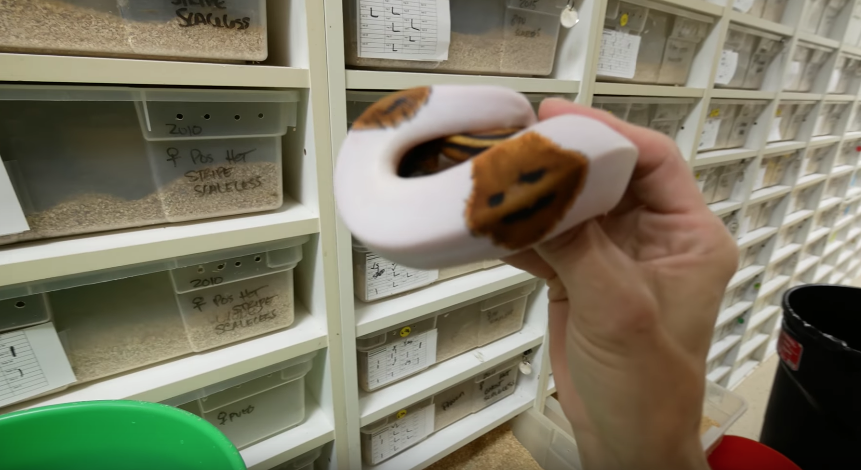 이 뱀은 파충류 브리더 브라이언 바르샤크(Brian Barczyk)의 비단구렁이 종류의 볼파이썬인데요.
