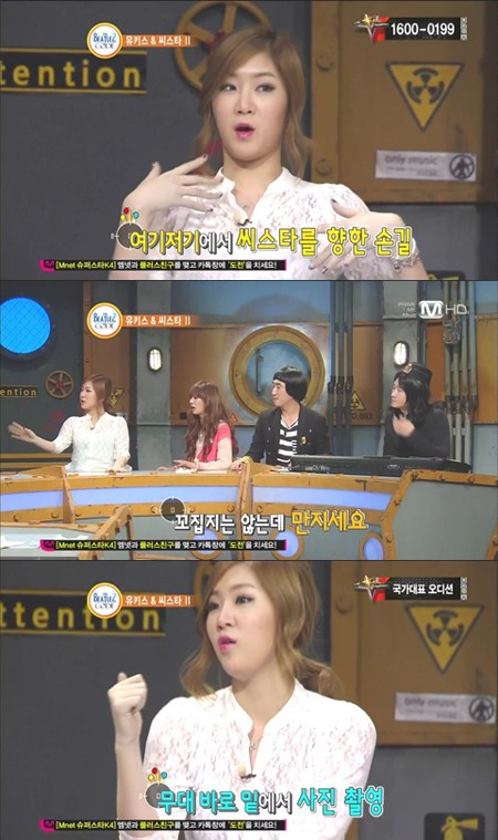 '위키미키' 최유정도 볼 꼬집을 요구 받았습니다. 최유정은 통통한 볼살로 많은 사랑을 받고 있는데요. 볼을 꼬집어 보고 싶다는 팬의 부탁을 웃으면서 들어줬습니다.