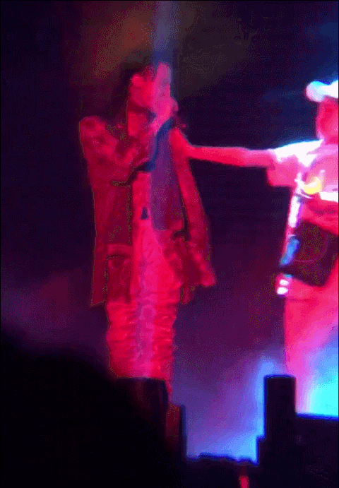 지드래곤도 콘서트 도중 무대에 난입한 팬 때문에 당황한 적이 있습니다. 여성팬은 지드래곤의 옷을 당기고, 목을 감싸 안았습니다.