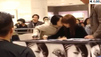 다음은 ‘아이콘’ 송윤형입니다. 지난 2015년 팬사인회에서 팬들과의 셀카 타임을 진행했는데요. 여성 팬이 사진을 찍는 척하며 그의 볼에 키스했죠.