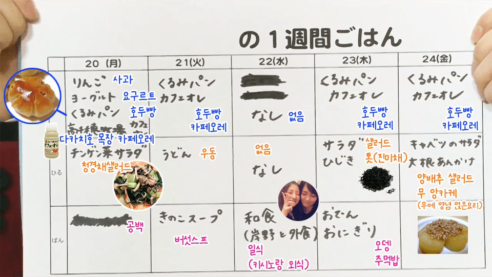 사야카는 한 예능 프로그램에서 최근 자신이 먹은 일주일의 식단을 가감없이 공개했습니다. 특별히 몸매 관리를 하는 식단이 아닌, 평소의 식습관이 고스란히 묻어났는데요.