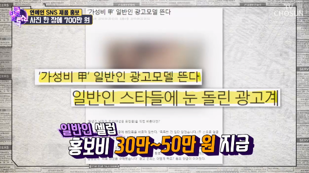 요즘엔 일반인 셀럽들에게도 적게는 30~50만원 홍보비를 주고 받는다고 합니다.