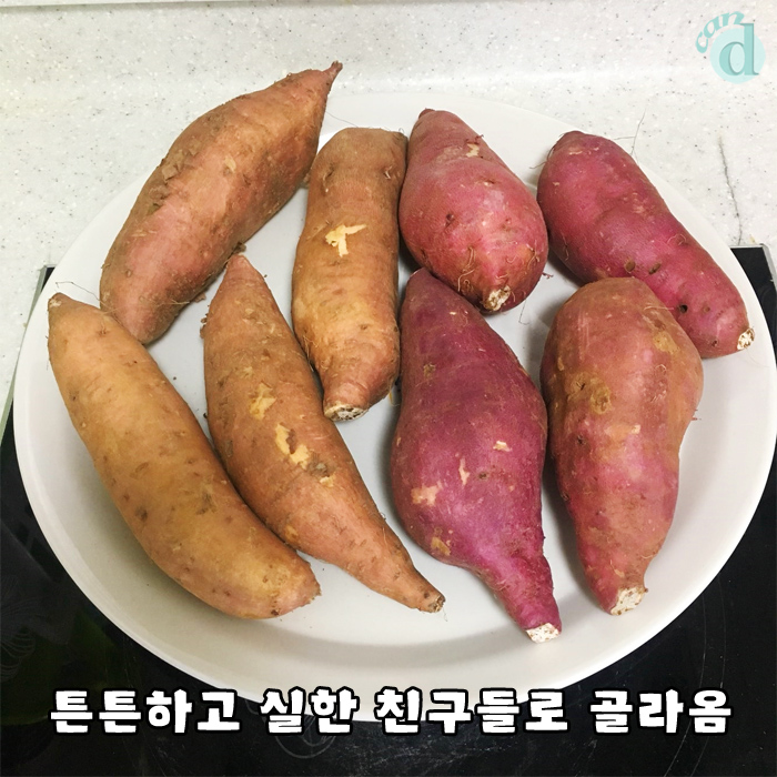 흙을 털고 어딘가 뽀얘진... 깨끗해진 고구마즈가 세팅됩니다.