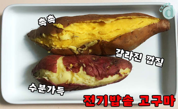 전기밥솥으로 찐 고구마는 물을 넣고 쪘기 때문에 수분이 가득했습니다.
