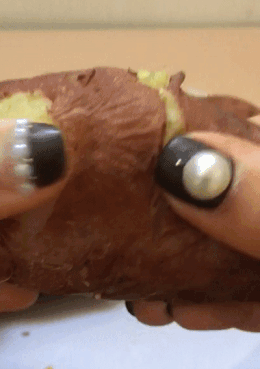 전기밥솥으로 찐 고구마는 껍질이 얇게 된 대신 고구마 속이 함께 까졌습니다.