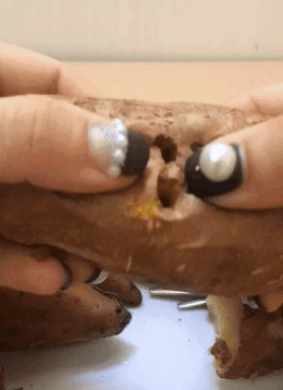 (첫 번째 고구마는 너무 푹 찔러서 걸린 느낌입니다^^)