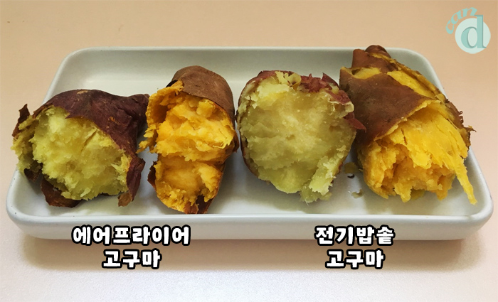 맛에서는 큰 차이가 없기 때문에, 수분감 있는 찐 고구마를 먹고 싶다면 전기밥솥을, 단맛이 강한 군고구마가 먹고 싶다면 에어프라이어를 사용하세요!