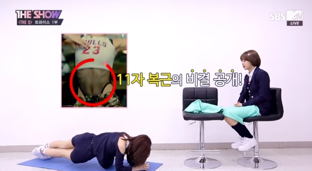 모모는 복근의 비결로 플랭크 응용 동작을 밝혔습니다. "하루 50개씩 3세트를 한다"며 150회 한다고 전했었는데요.